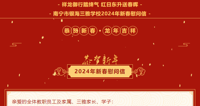 祥龙御行踏绛气 红日东升送春晖——南宁市银海三雅学校2024年新春慰问信